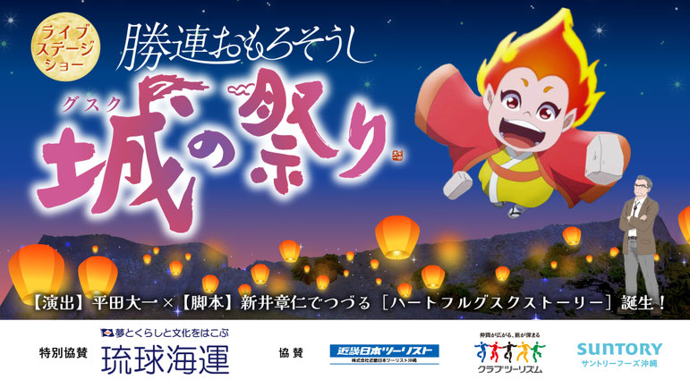 あまわりパークを訪れていたはずの来場者が、な、なんと!いつのまにか月明かりに輝く「勝連城」に! そこでは「幻の城(グスク)の祭り」が繰り広げられていた...